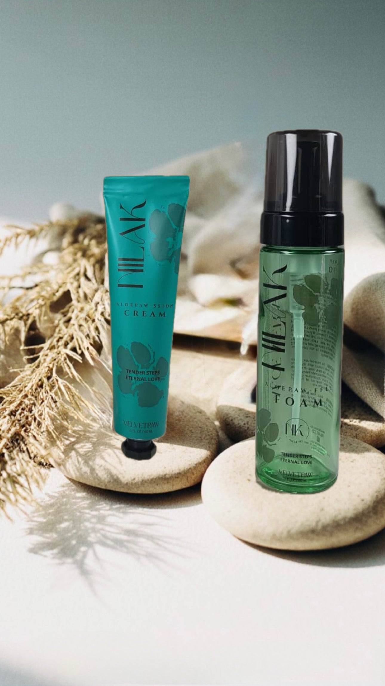 A perfect duo — our cream and foam bundled together for complete daily paw care.