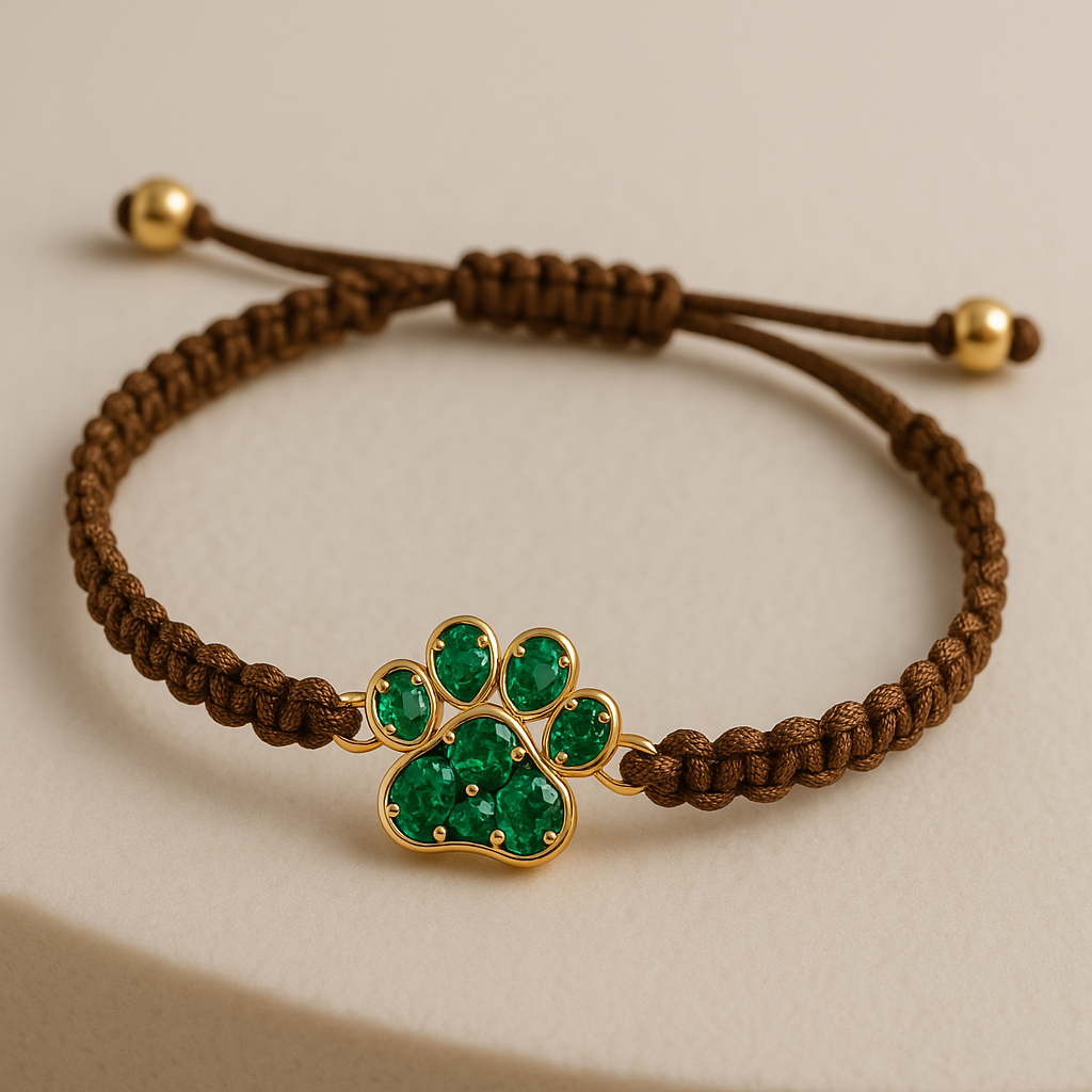 Minimalist yet striking, the Velvet Bond bracelet features a singular emerald paw, a refined symbol of your pet’s presence in your life.